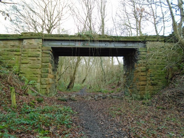 A short stretch of the trackbed was quite badly flooded when I visited so I had to take a detour around it using a footpath that connected to Parkhead Close, another path off Applehaigh view returned to the railway and this was an old footpath that existed when the railway was built so the remains of a bridge could be seen.